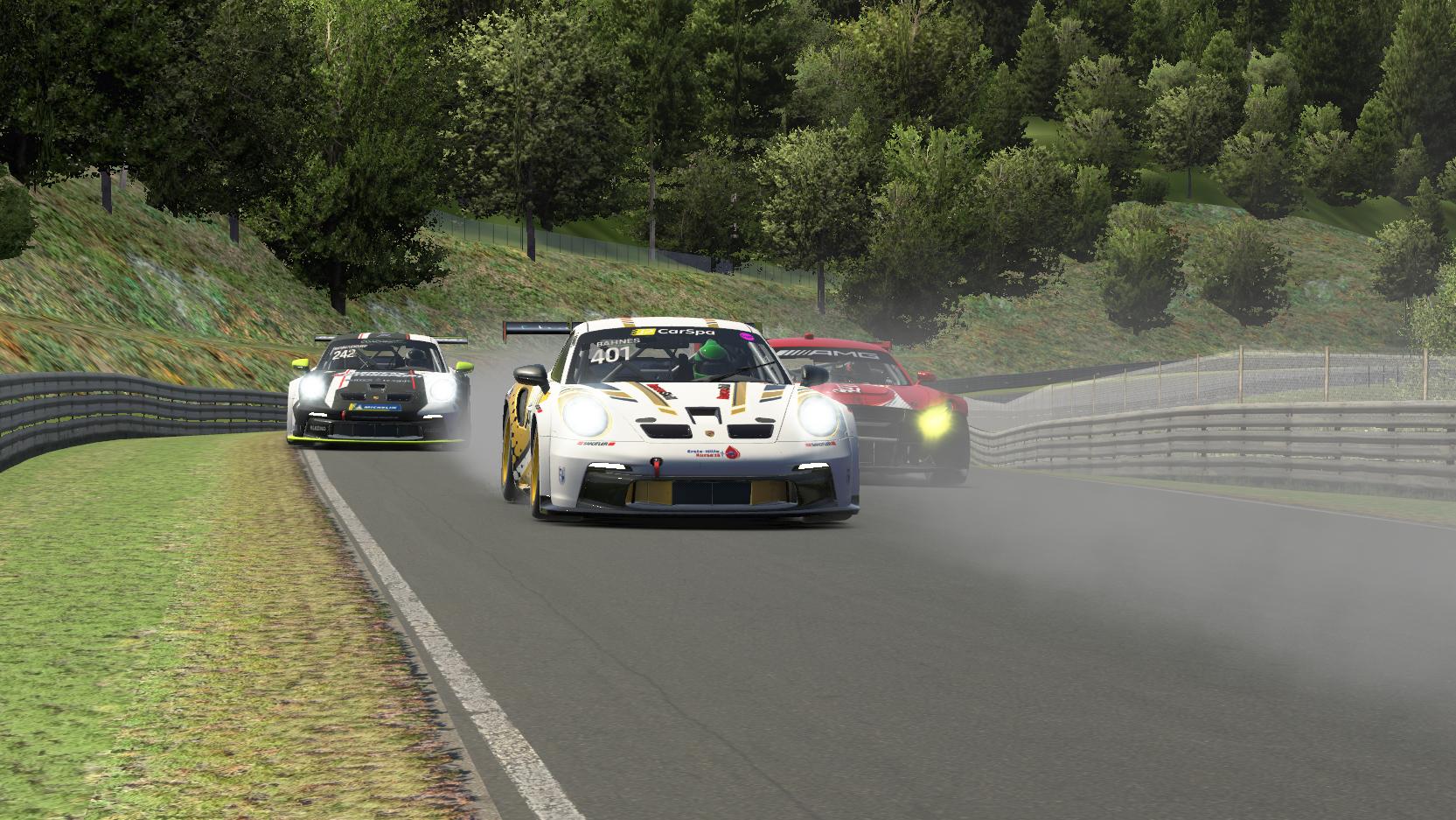 Was für ein Rennen! Pole Position beim Rennstart im Regen. Viele GT3 probierten es auf Slicks mit entsprechenden Unfällen. Da war es mehr als einmal knapp.